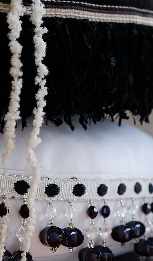 Classique is a collection reflecting my definition of the classic palette of Black & White. I used my signature style in creating contrast, detailed placement and texture, while mixing up the tempo with fringing, braiding and glass beading.